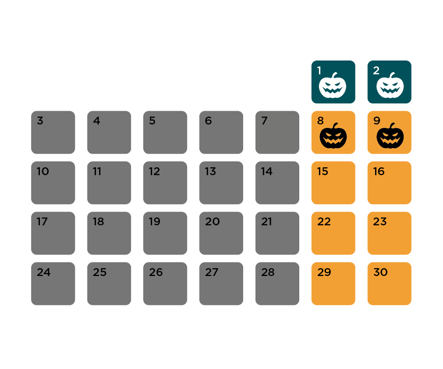 Family Halloween: (10:00 > 18:00 / 10:00 > 22:00) Vom 11. Oktober bis 9. November verwandelt sich der Park mit Themenausstellungen und Spaß für Groß und Klein. Begeben Sie sich auf ein monströses Abenteuer und feiern Sie Halloween mit uns!