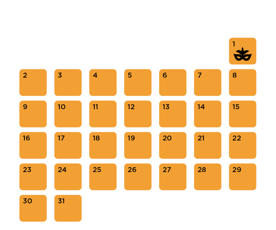 KARNEVAL: (10:00 > 18:00) Vom 14. Februar bis zum 1. März (siehe Kalender oben) mit uns die Magie von Karneval!